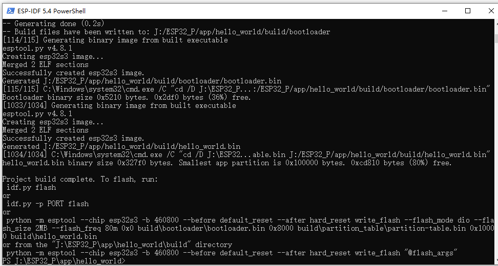 后续编译、烧录、查看日志,都可以在这个窗口里完成。如果以后需要重新打开,只要在开始菜单里搜索 esp-idf 即可。我个人更习惯用 PowerShell,因为命令补全更友好。