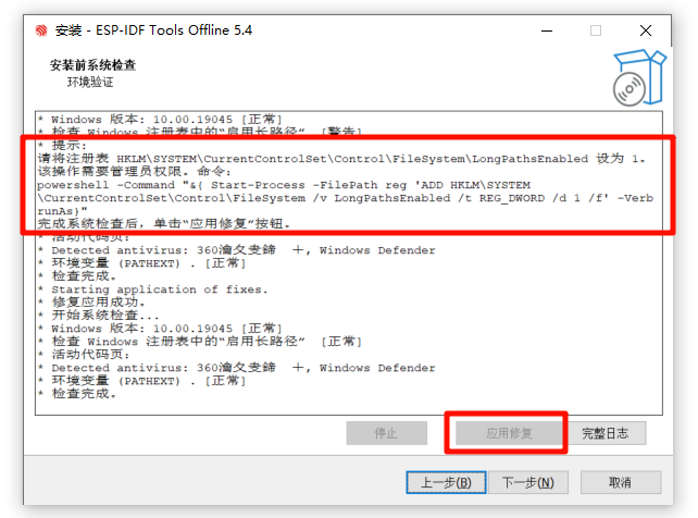 如果提示需要修复长路径的,可以点击应用修复,但是最好不安装到长路径中