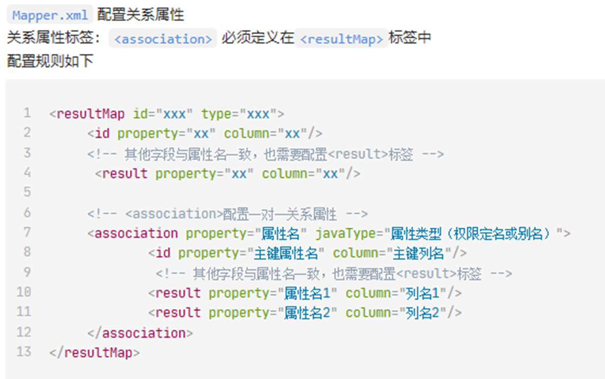 mybatis中一对一结果集映射配置