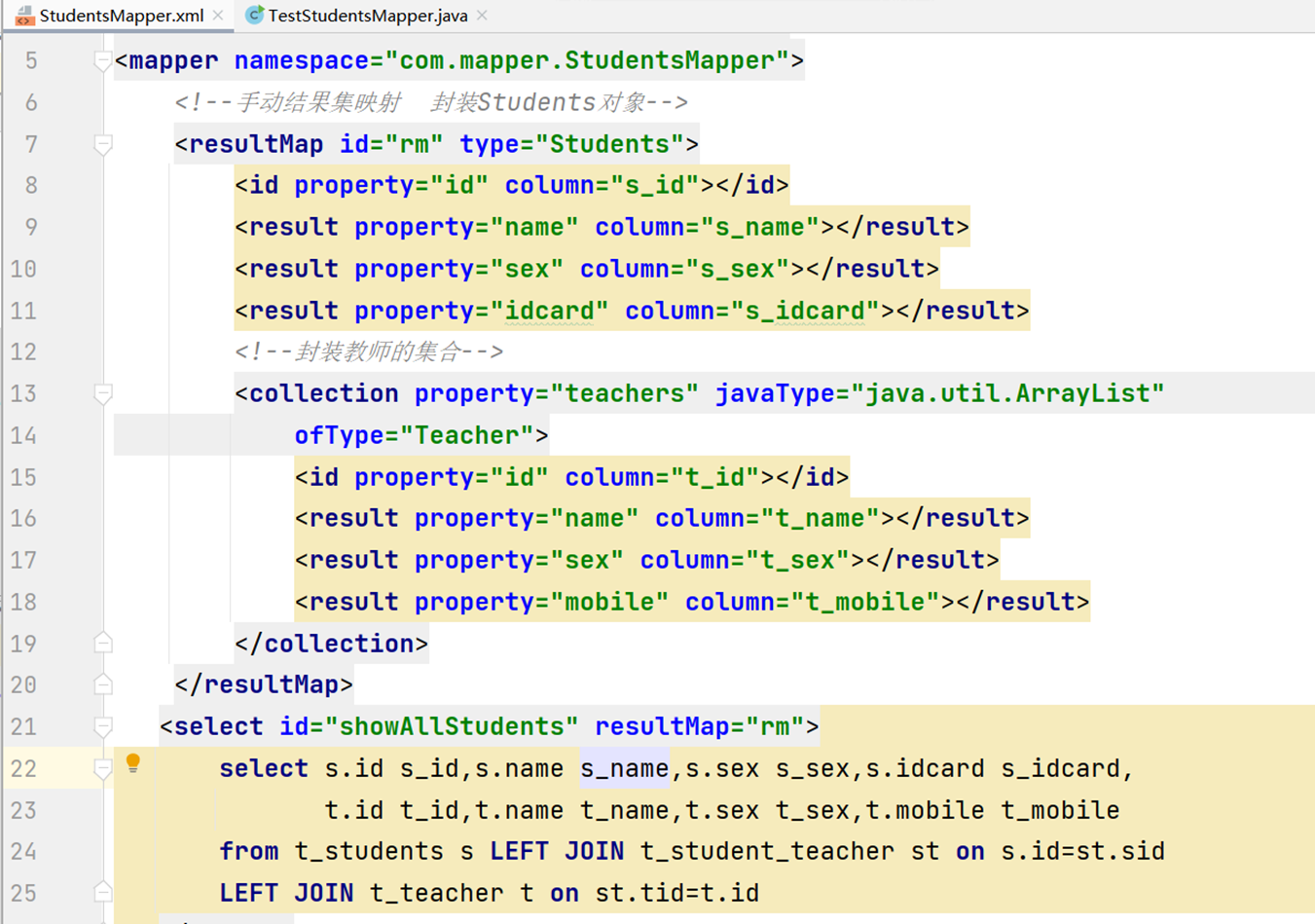 mybatis手动映射结果集实现:
