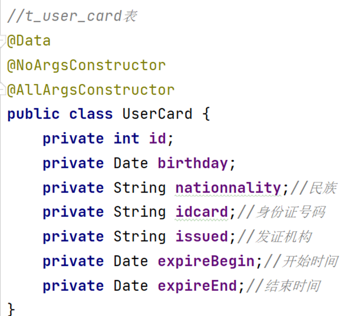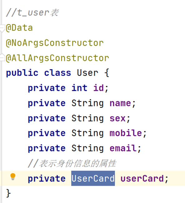 user_card表的每一行数据对应一个UserCard类的对象