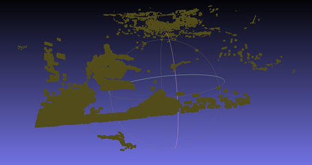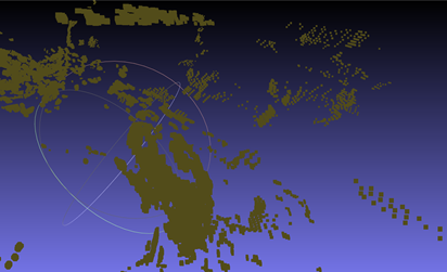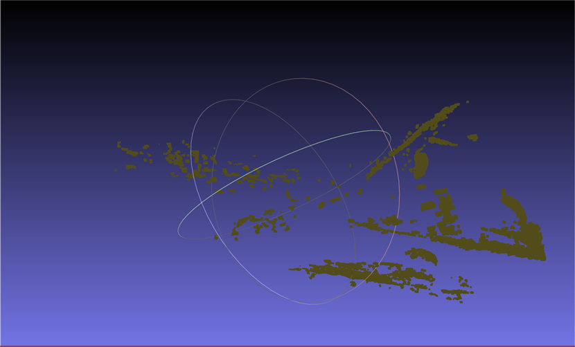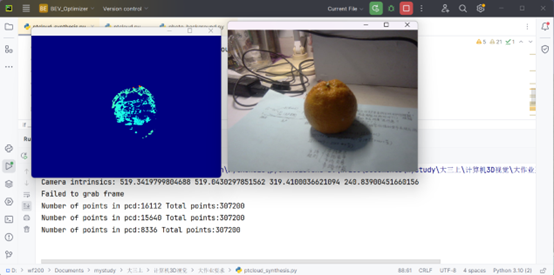 本实验的远景信息点云并没有去除前景物体,同时前景物体(第一个点云)也没有进行深度滤波,所以用MeshLab查看实际拼接效果(见第6部分成果展示)的时候,会发现除了橘子的"一瓣表面"之外,还有很多背景的杂质点群。所以使用的方法也仅仅限于第6部分的最小二乘法和ICP精配准,未使用第7部分的质心法,因为质心法对于前景物体点云的提纯度有很高要求。