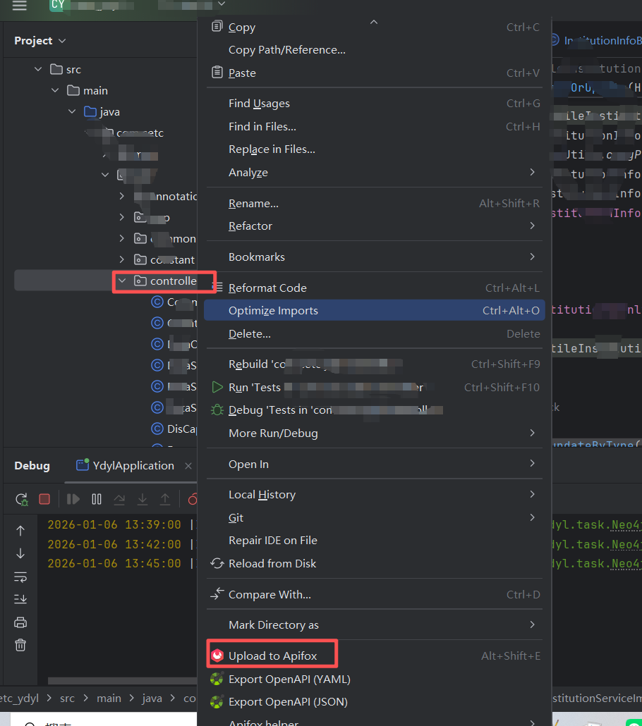 在任意文件夹,或者文件,或者文件内,都能右键然后点击Upload to Apifox,就能同步到apifox了
