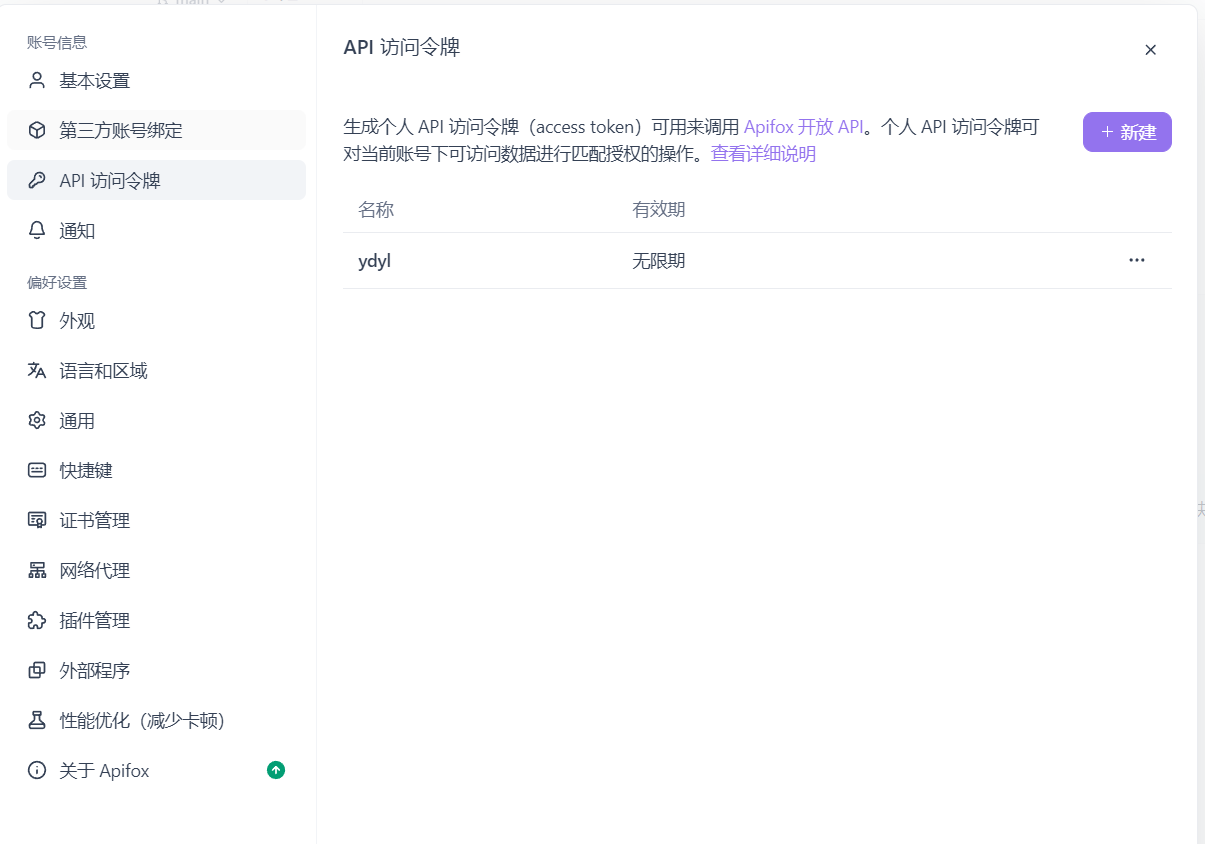 点击头像→账号设置→API访问令牌 生成令牌后需要复制保存,不然就看不到这个key了。