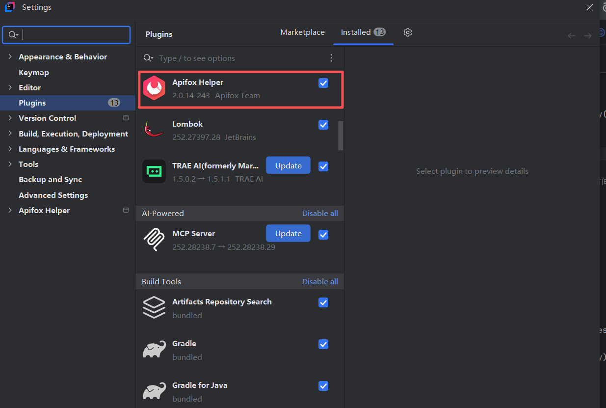 在 IntelliJ IDEA 中打开插件市场,搜索 "Apifox" 并安装官方插件。安装完成后重启 IDE 使插件生效。