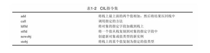 中间语言以前曾经叫做MSIL,现在统一称为CIL[1]。CIL与处理器的指令集非常相似,它是CLR的汇编语言,但它比真正的汇编语言要简单许多,CIL甚至支持直接操作对象。CIL和CTS的关系十分密切。需要说明的是,无论是C#还是Visual Basic.NET,编译后的结果都是CIL。CIL指令集非常多,表1-2是其中的一小部分。