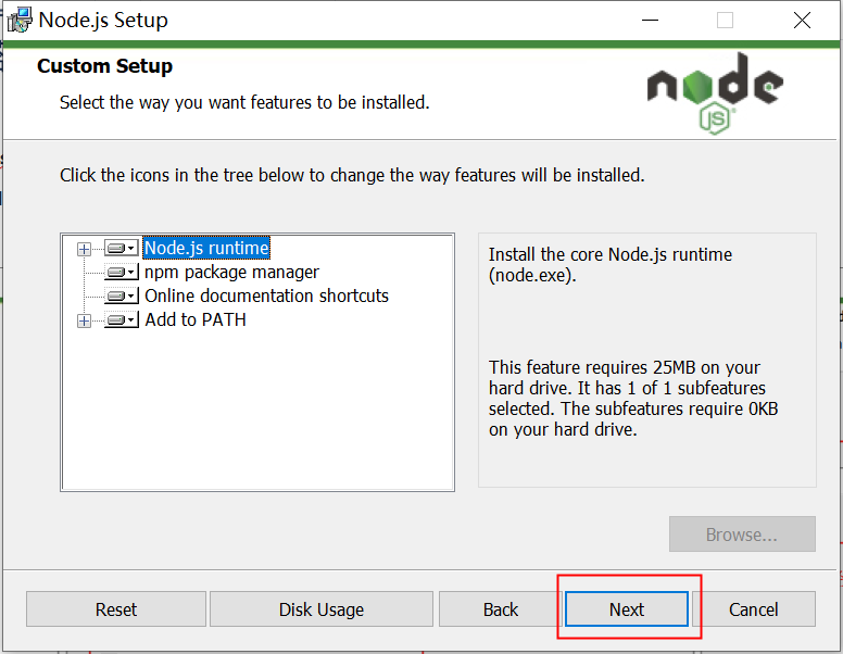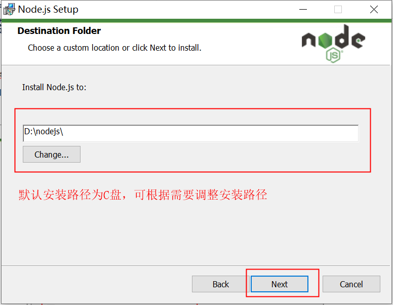 例:D:\nodejs