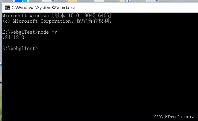 二、在cmd窗口输入:node -v命令,检查是否安装nodejs。