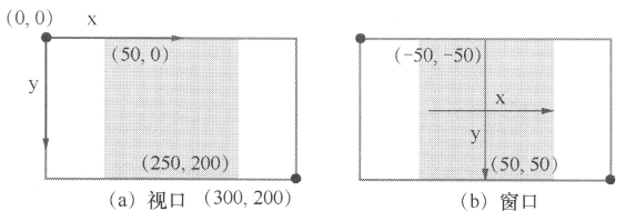 窗口与视口是同一个矩形,只不过用逻辑坐标定义的坐标系。窗口可以直接定义矩形区的逻辑坐标范围。