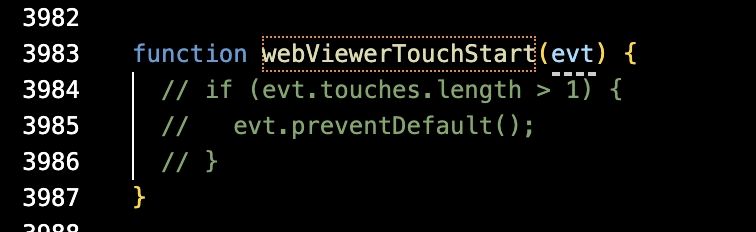 因为在微信浏览器打开那个链接也不允许双指缩放,然后开始调整pdf.js的源码,看有没有对移动端做手势限制的代码。