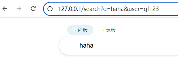 // 当访问路径为 localhost/search?q=haha&user=qf123