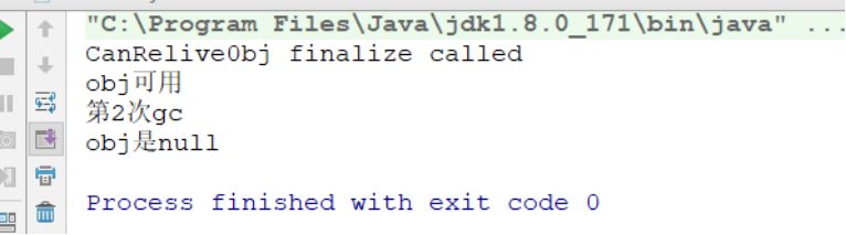 上述代码中TraceCanReliveObj 对象是一个在finalize()函数中可复活的对象。