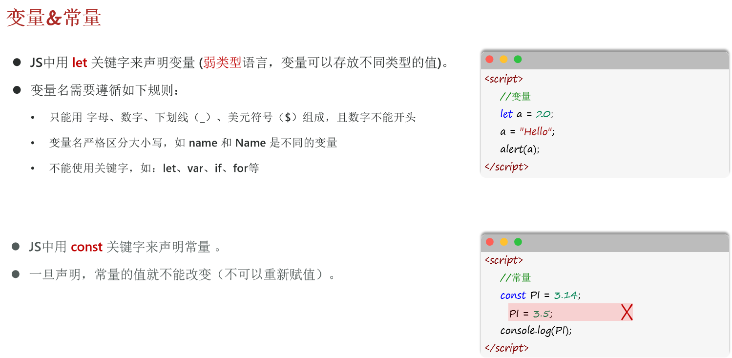 在早期的js中,声明变量还可以使用var,但是并不严谨(不推荐)