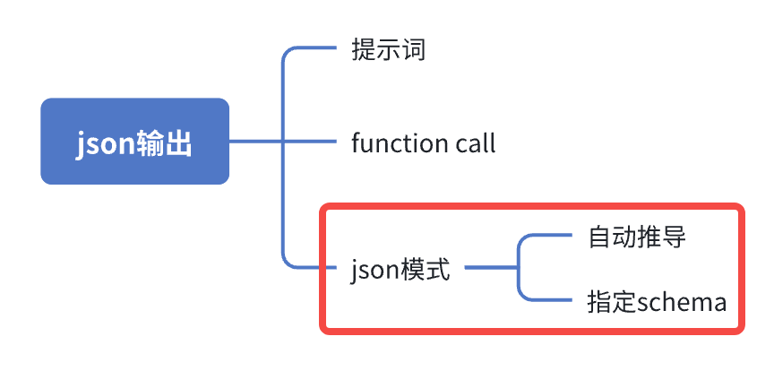至此,通过function call获得结构化输出的方式咱们就学习完了,您已经掌握了两种方法,可以在简单和准确之间做出选择,还剩一种方式咱们也要学习,就是下图红框中的JSON模式