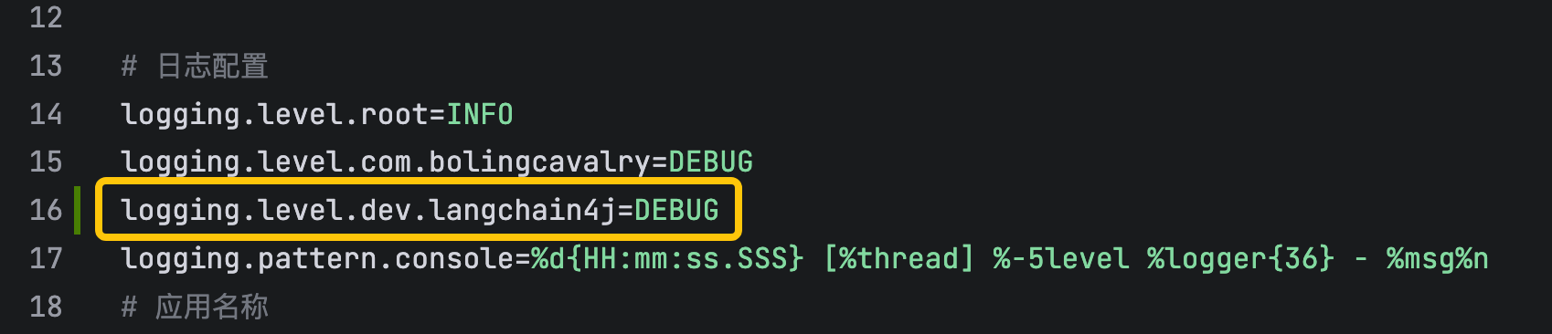 - 修改properties配置文件,允许打印LangChai4j的日志