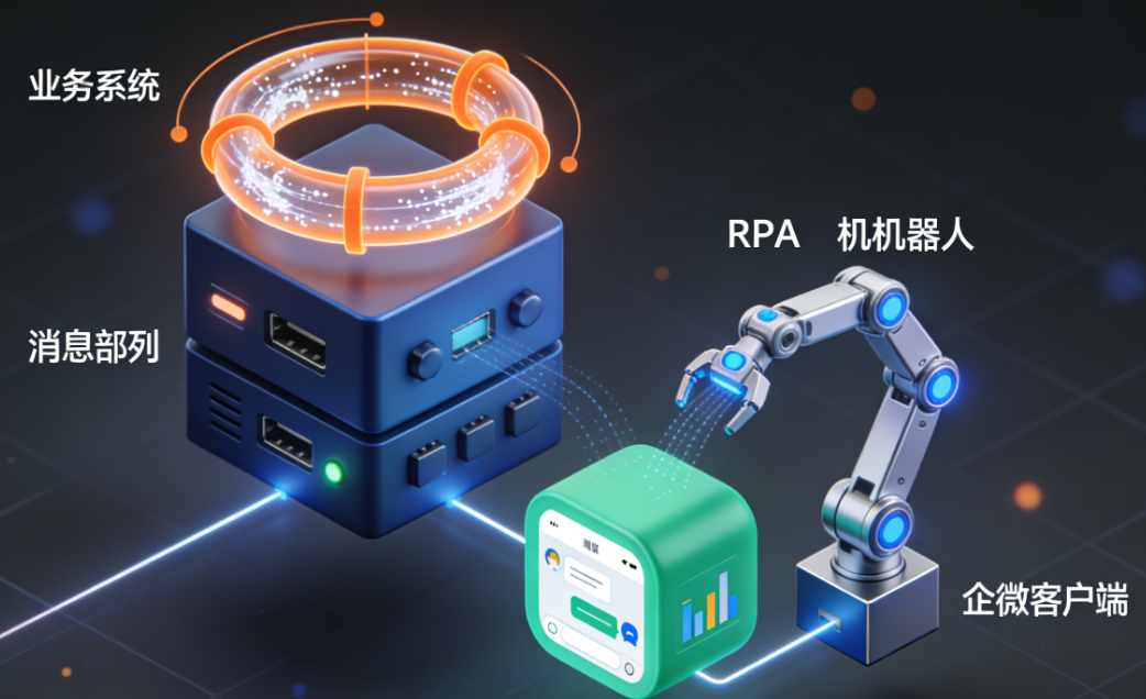RPA(机器人流程自动化)方案通过模拟人工操作客户端,能够完美绕过这些 API 限制,实现"全场景、全群聊"的主动推送。