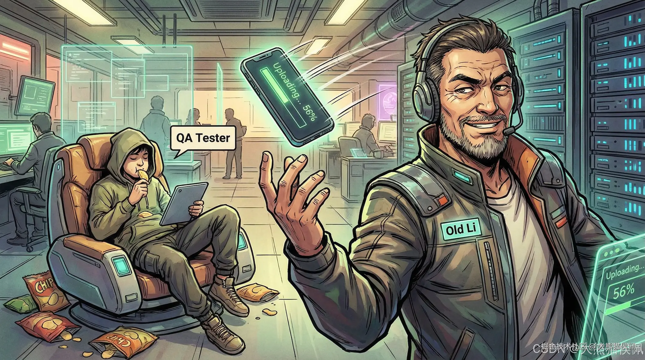 老李站起身,伸了个懒腰,骨头发出噼里啪啦的响声。"行了,小白,打包发布。今晚不用加班修 Bug 了。"