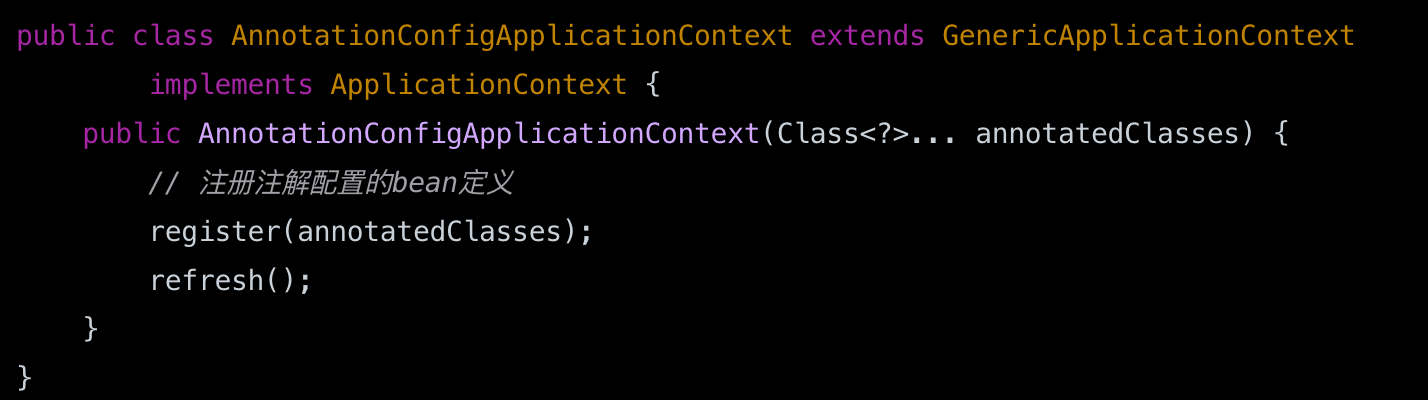 AnnotationConfigApplicationContext实现了ApplicationContext,并可以创建各种不同的bean,可以一次性创建和管理多个相关 bean,体现了抽象工厂模式的产品族思想。