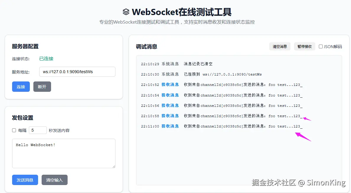 而Socket服务和WebSocket位于同一个服务,就可以获取到WebSocket的所有通道(channel),就可以将消息推送给客户端了。