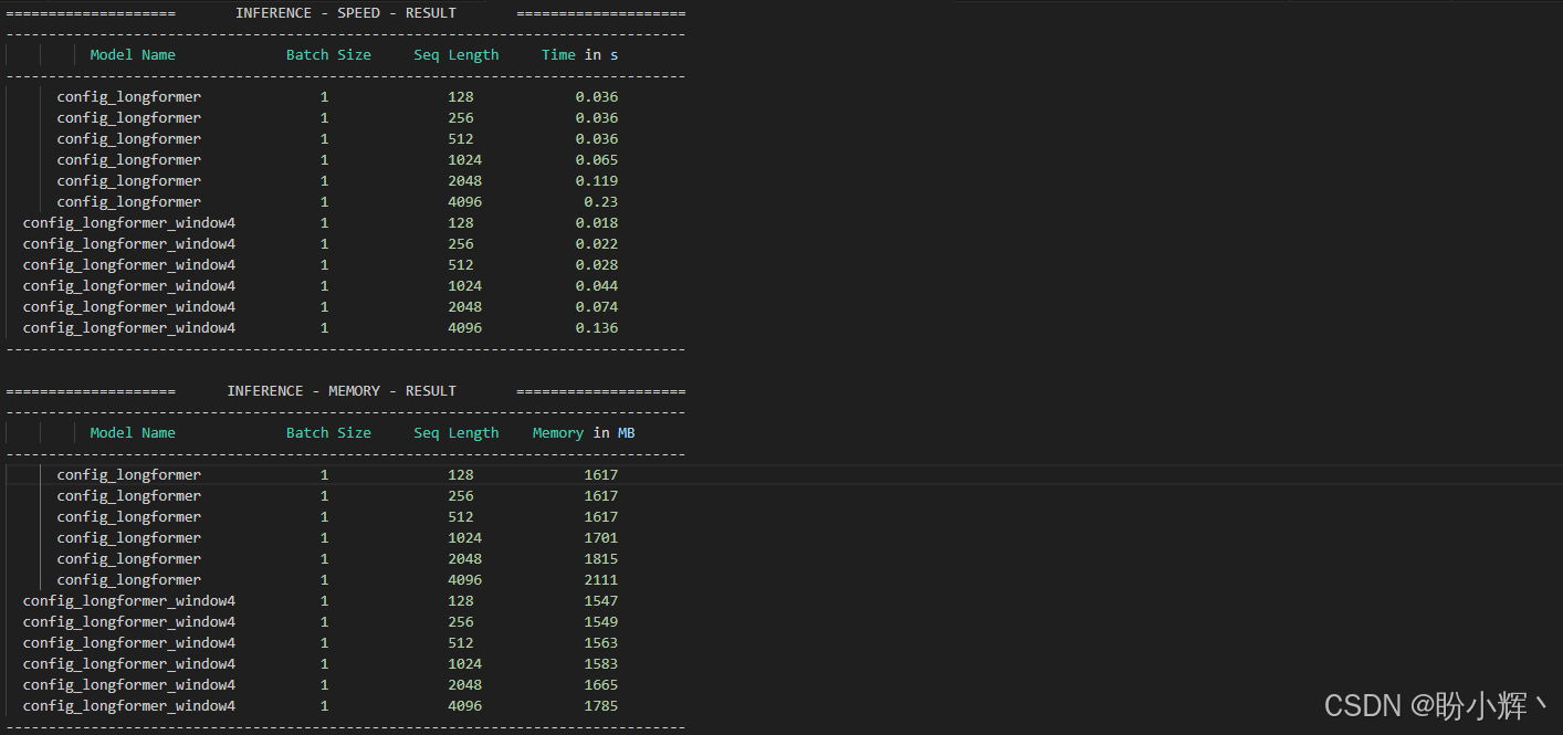 (7) 接下来,对比两个 Longformer 配置的计算性能: