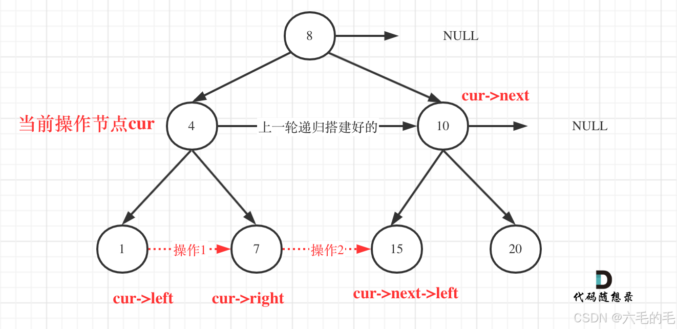 填充它的每个 next 指针,让这个指针指向其下一个右侧节点。如果找不到下一个右侧节点,则将 next 指针设置为 NULL。
