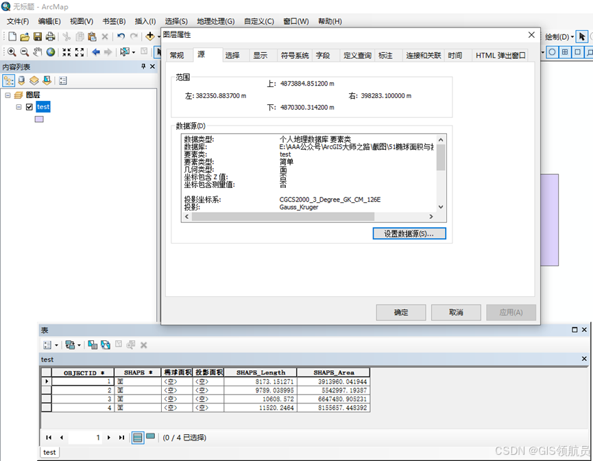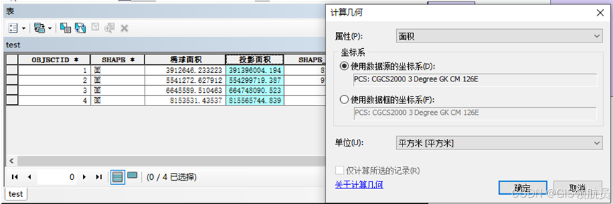 属性:面积;坐标系:使用数据源的坐标系。如果数据源是地理坐标系,我们想要投影面积,可以把数据框设置为投影坐标系,计算几何时,坐标系选择使用数据框坐标系。