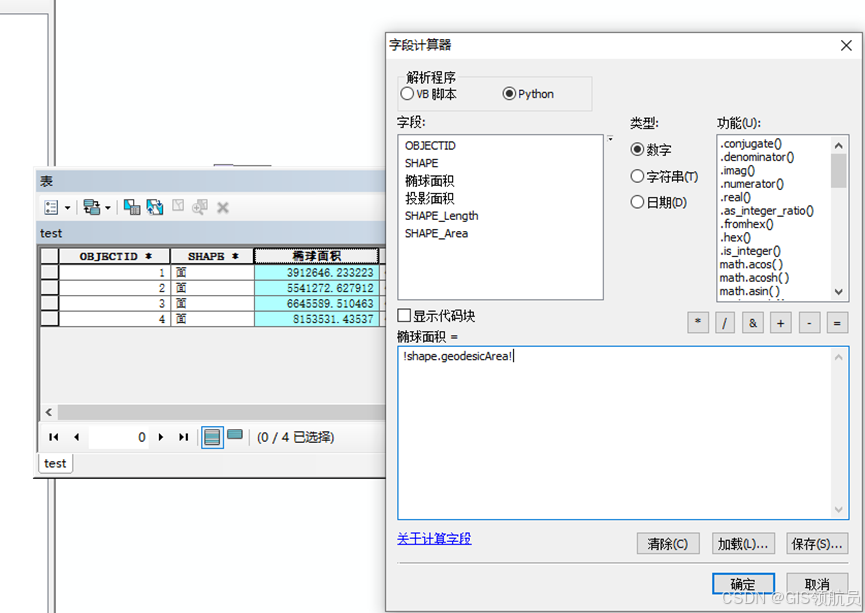 在字段"椭球面积"上右键---字段计算器,注意:字段"椭球面积"数据类型为双精度。