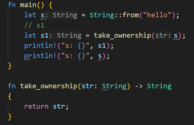 s1只是为了获取到s的所有权,当s进去到函数并且函数执行完成后s就被销毁了