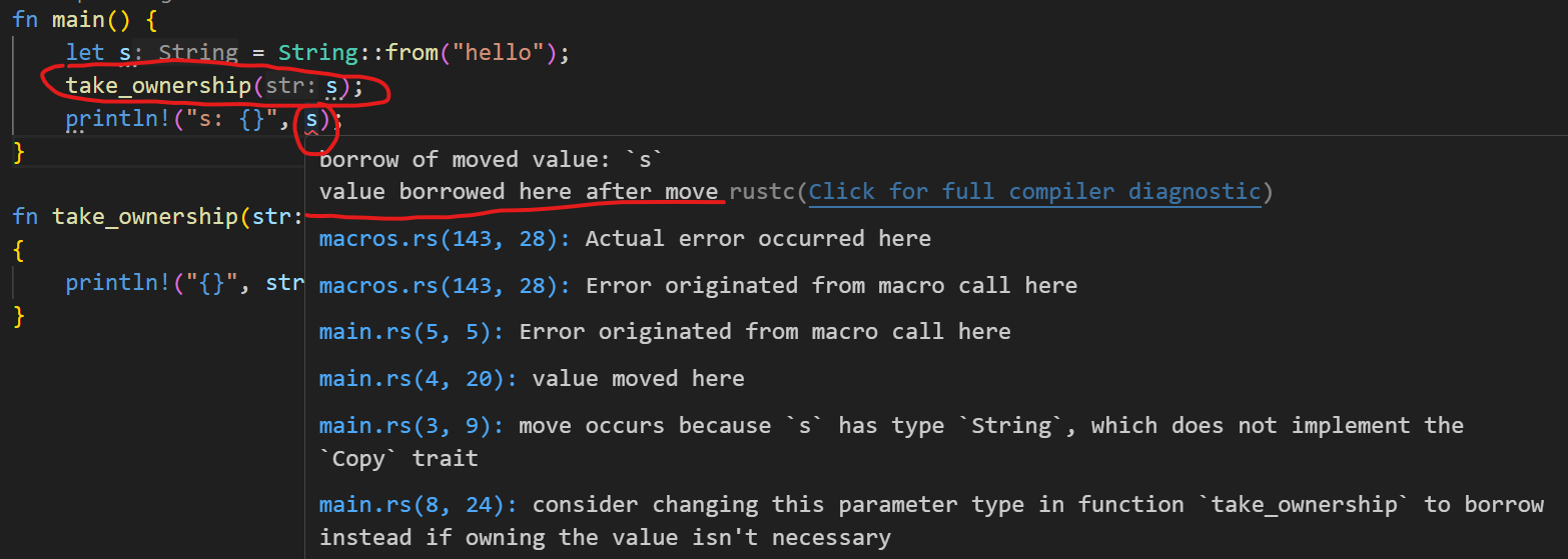 - 将String值传给函数也会发生Move,原始值也会报错