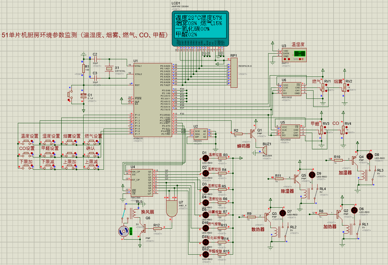 51单片机厨房环境参数监测(温湿度、烟雾、燃气、CO、甲醛)