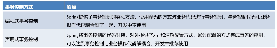 事务是开发中必不可少的东西,使用JDBC开发时,我们使用connnection对事务进行控制,使用MyBatis时,我们使用SqISession对事务进行控制,缺点显而易见,当我们切换数据库访问技术时,事务控制的方式总会变化,Spring就将这些技术基础上,提供了统一的控制事务的接口。Spring的事务分为:编程式事务控制和声明式事务控制