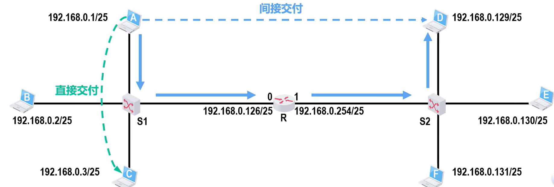 c) 为IP包重新封装新的帧头(更新源和目标MAC地址为当前路由器与下一跳设备的地址),然后转发。 - 此过程在多个路由器间重复,直至数据包到达目标网络。