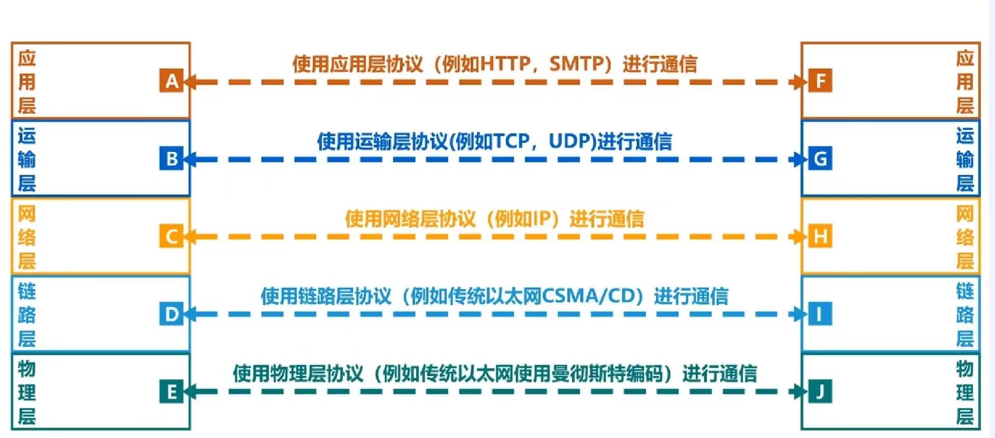 对等层之间是虚拟的逻辑通信关系。 虽然物理通信只发生在最底层的物理介质上,但在逻辑上,每一层都认为自己是在与对方的同一层直接对话。例如,电脑A的传输层认为自己发送的TCP段是直接交给电脑B的传输层,实际上这个段是经过了下层逐层封装、传输、再解封装才送达的。这种逻辑通信的规则就是协议。