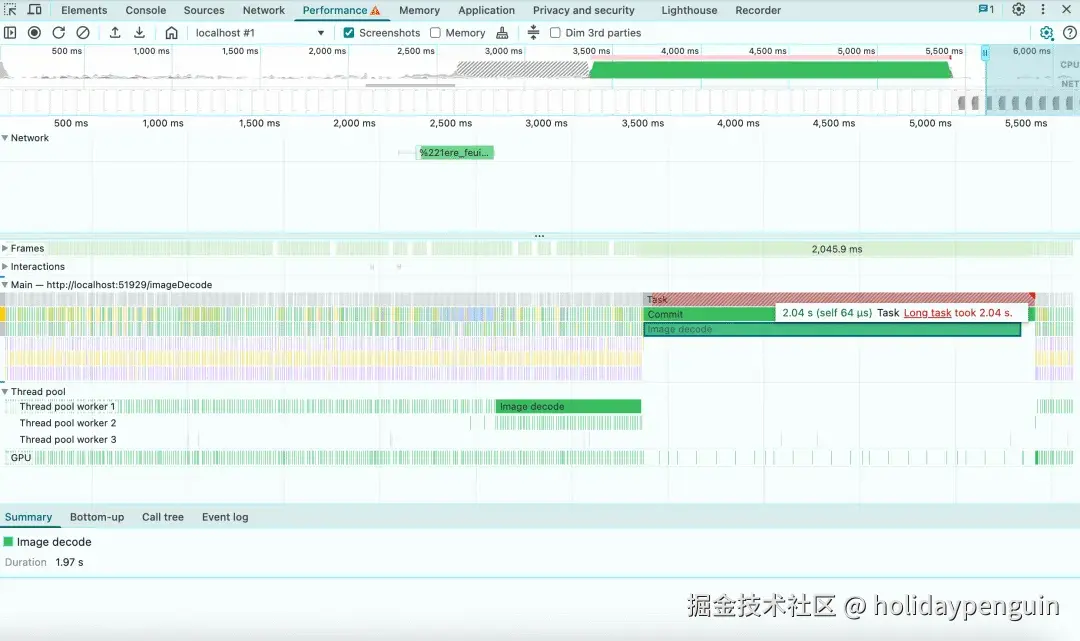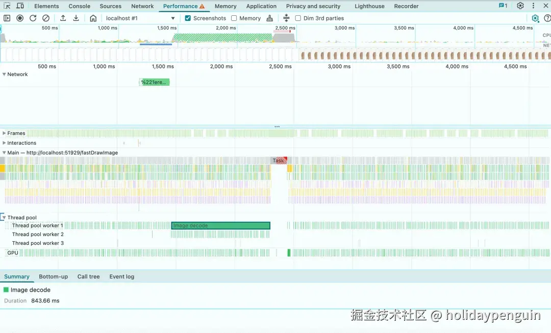 修复后的性能分析,来自 Chrome Profiler 的结果(MacBook M1,6x CPU 限速,约 7MB 图像数据)