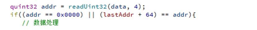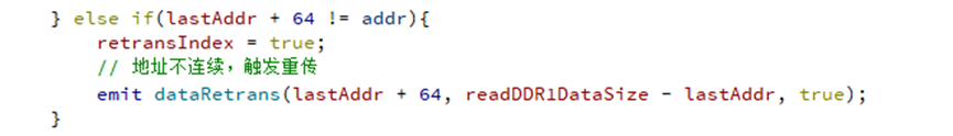 当检测到地址不连续时将丢包的地址和剩下接收的数据长度发送给FPGA,FPGA接收到重传标志后,将从丢包的地址开始发送数据。
