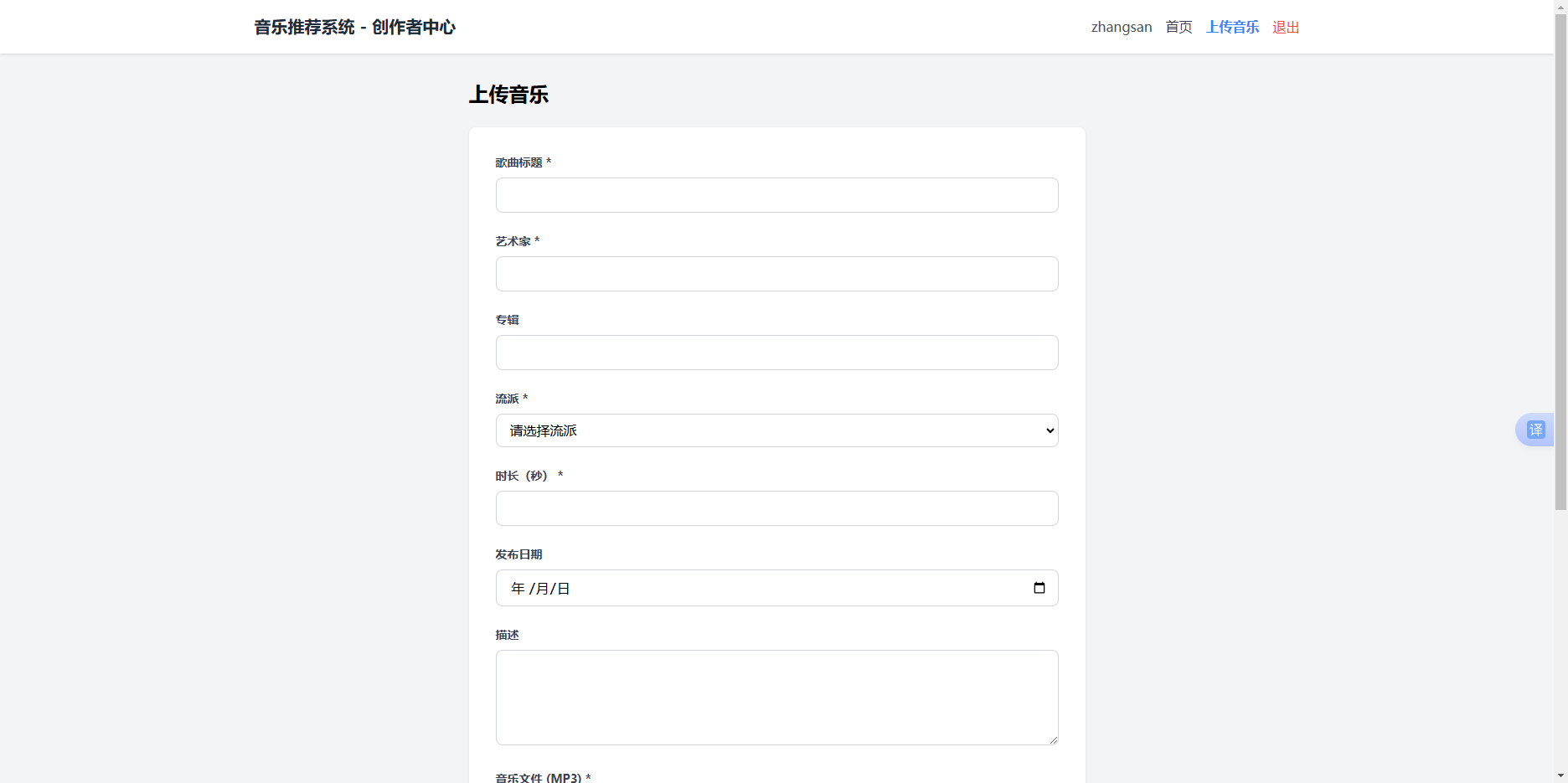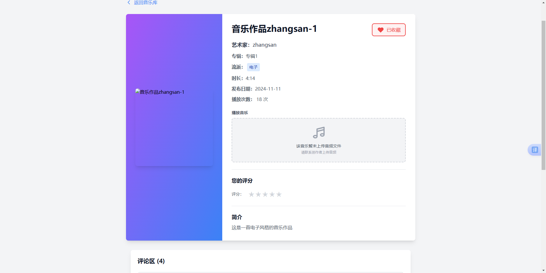 - ✅ 上传音乐作品(音频+封面)