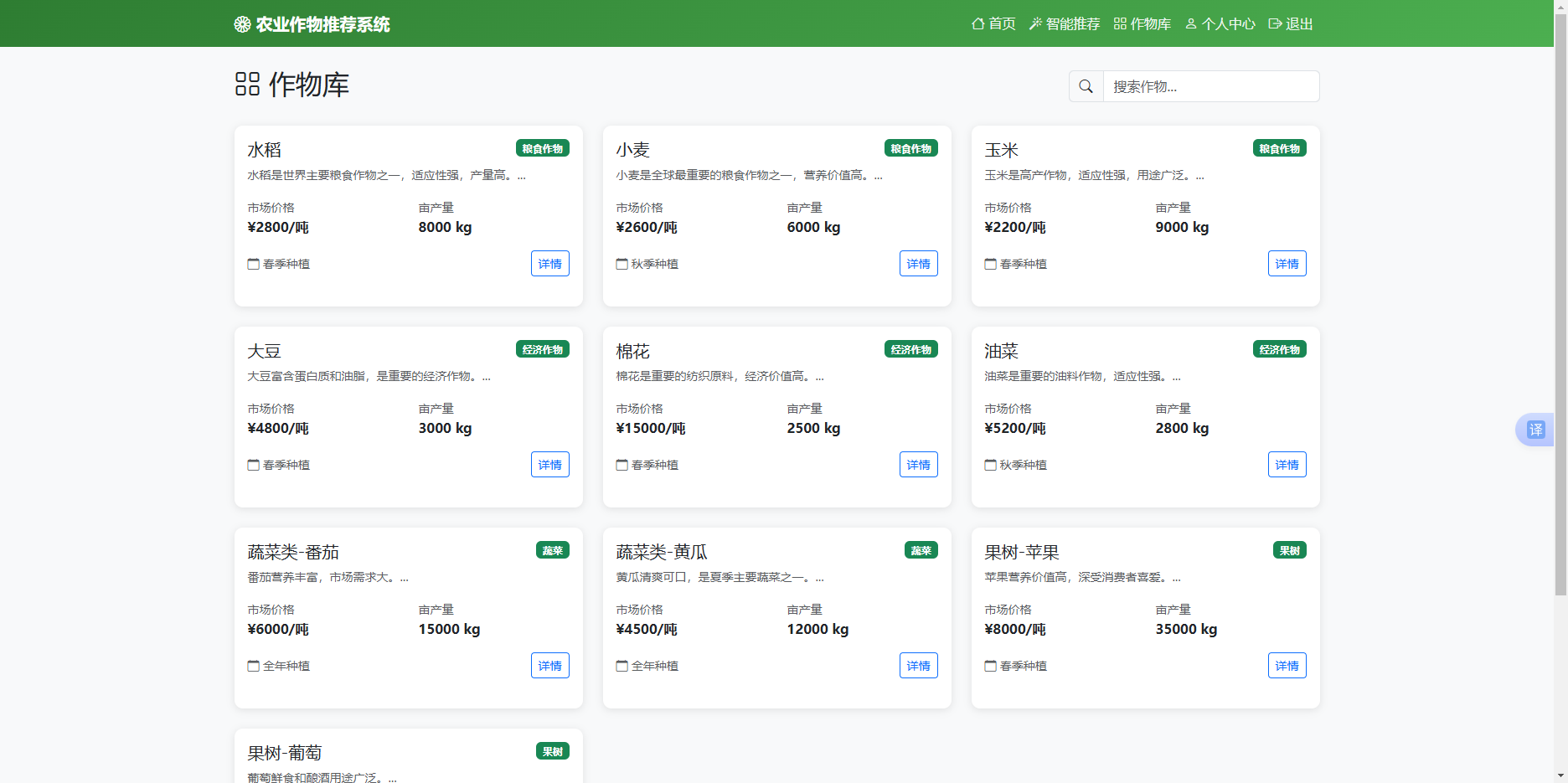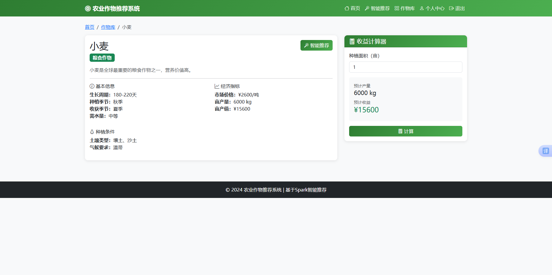 基于Spark智能推荐算法的农业作物推荐系统,为农民提供精准的作物种植建议。