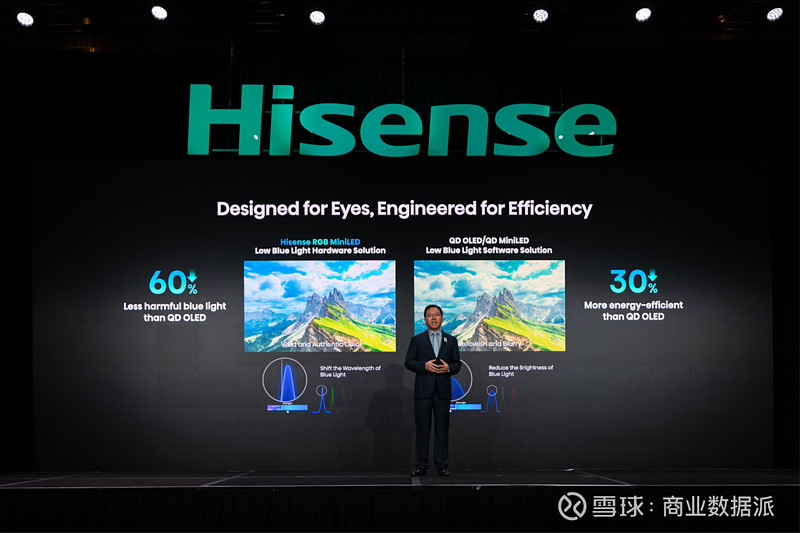 值得一提的是,光源和光色同控芯片的进化,让海信RGB-Mini LED实现了有害蓝光比QD-OLED降低60%,比传统QD-Mini LED降低75%,能耗降低30%,在拥有极致画质的同时,既是护眼先锋,也是节能标杆。