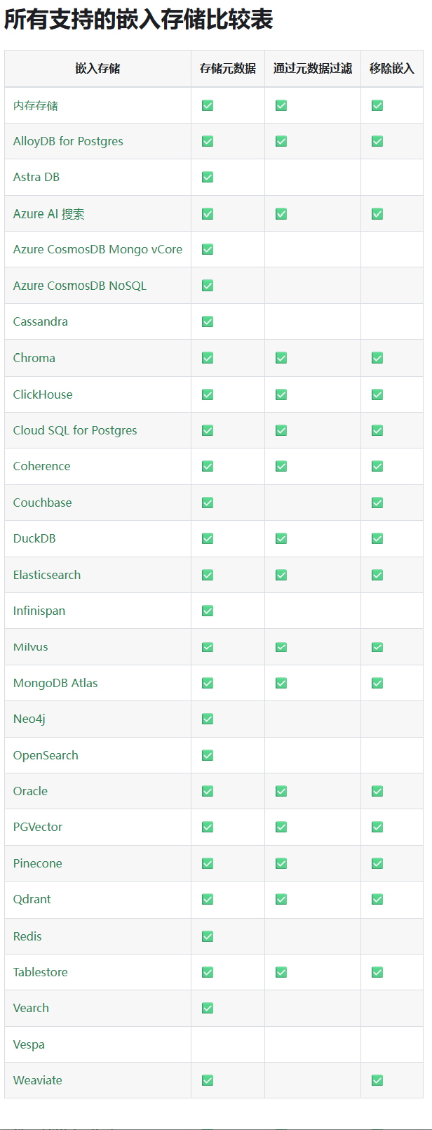 - 可以看下LangChain4j官网中,对于向量数据库的支持