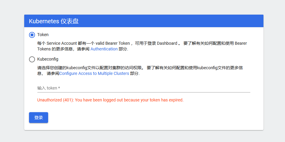 #使用输出的token登录Dashboard 使用火狐或者360浏览器进行登录