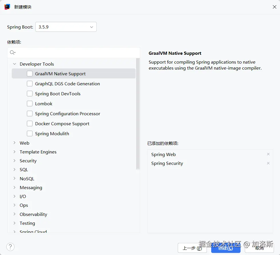 首先我们新建一个Spring Boot项目,选择依赖时,只需要勾选 :Spring Web 和 Spring Security。