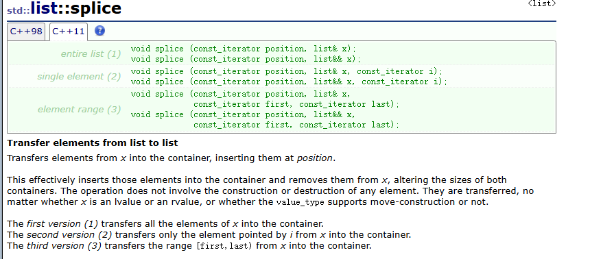 splice函数用于两个list容器之间的拼接,其有三种拼接方式: