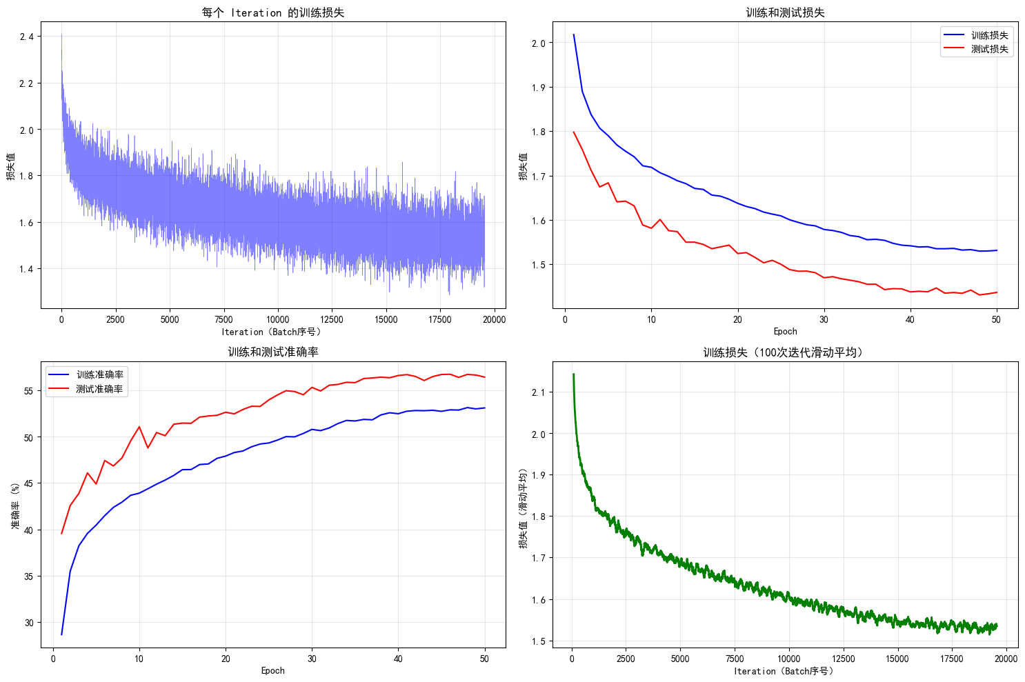 print(f"训练完成!最佳测试准确率: {best_accuracy:.2f}%")