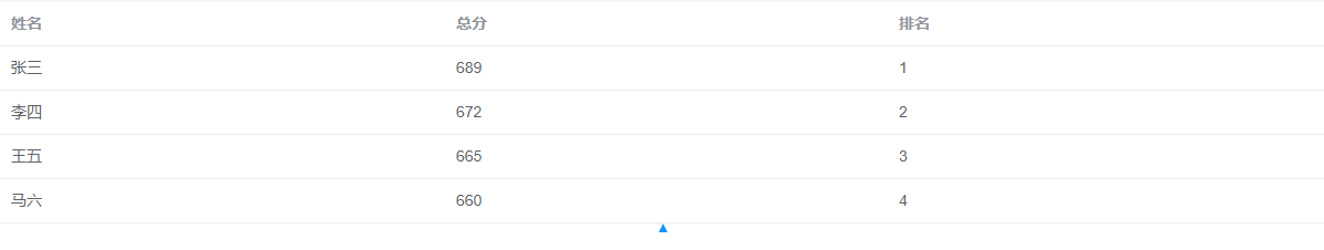 这里我们手动指定一下数据,假定这是一个关于排名的数据,有姓名、总分、排名三个字段。