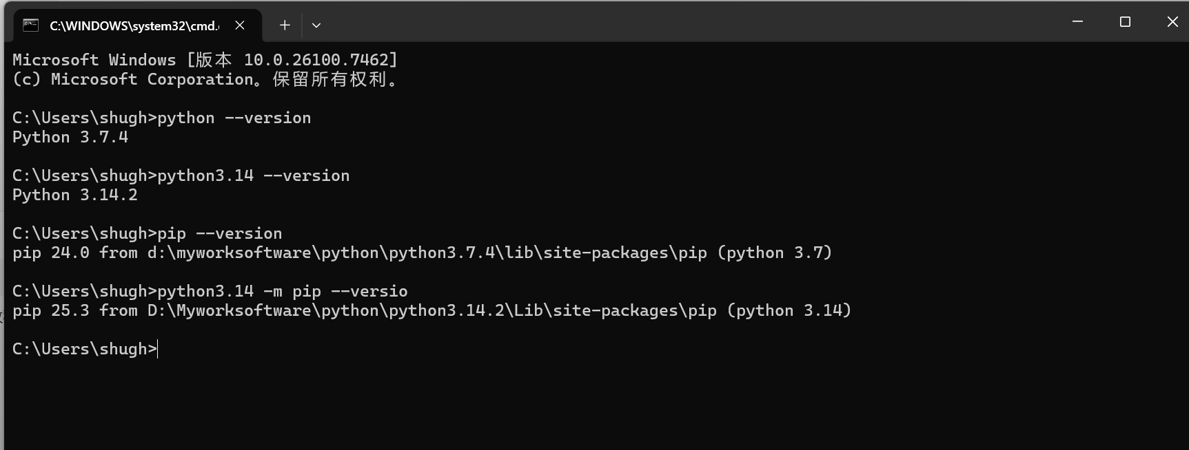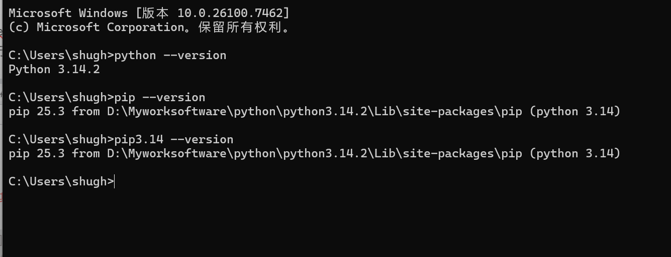 - 若 3.14.2 的安装路径在PATH中排前,输入pip --version会默认调用 3.14.2;