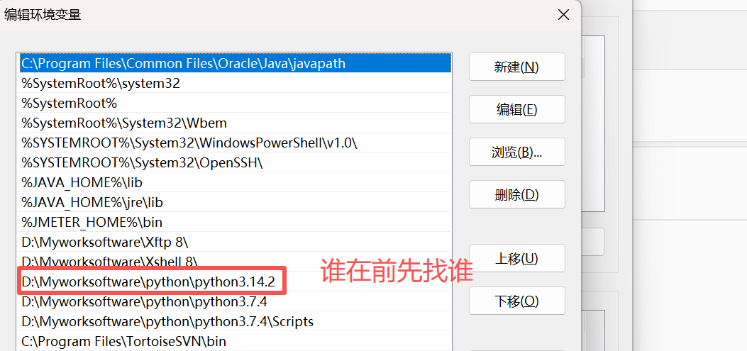 PATH中排前,输入python --version会默认调用 3.14.2;