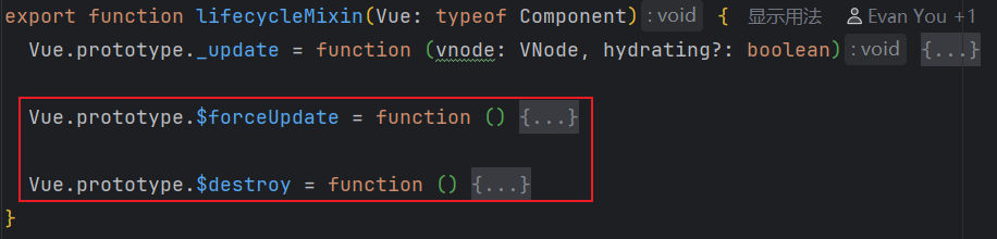 | lifecycleMixin | **添加生命周期相关方法** | forceUpdate、$destroy |