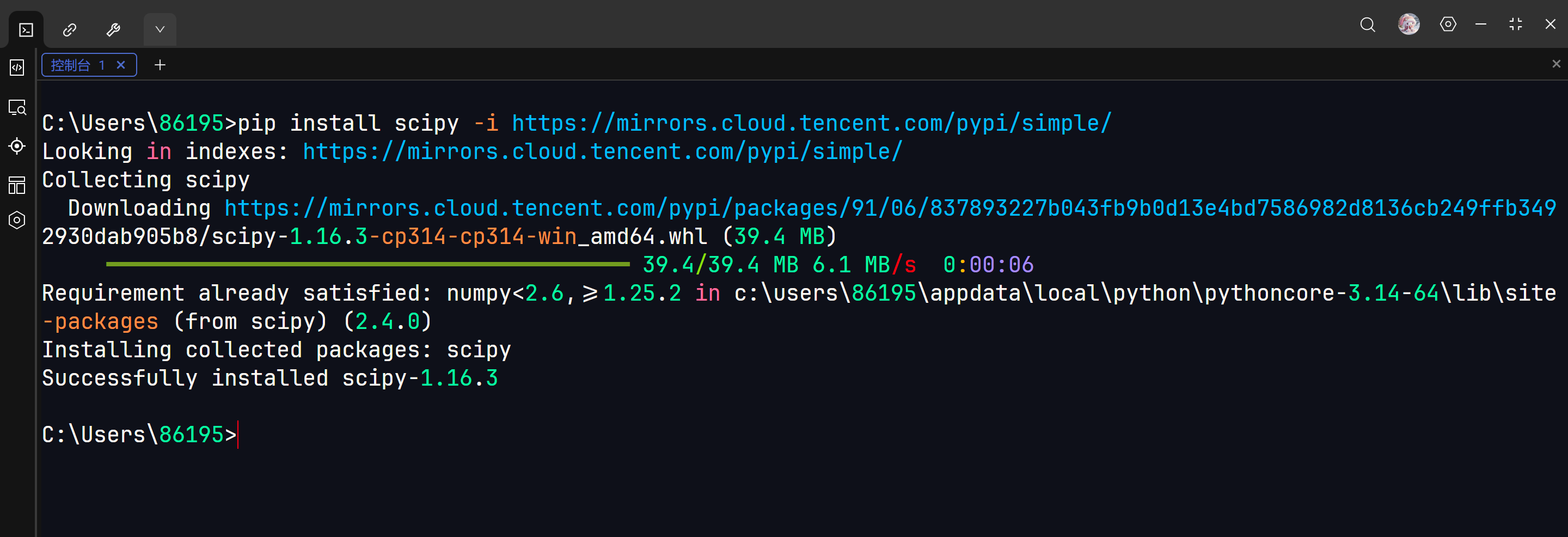 pip install scipy -i https://mirrors.cloud.tencent.com/pypi/simple/