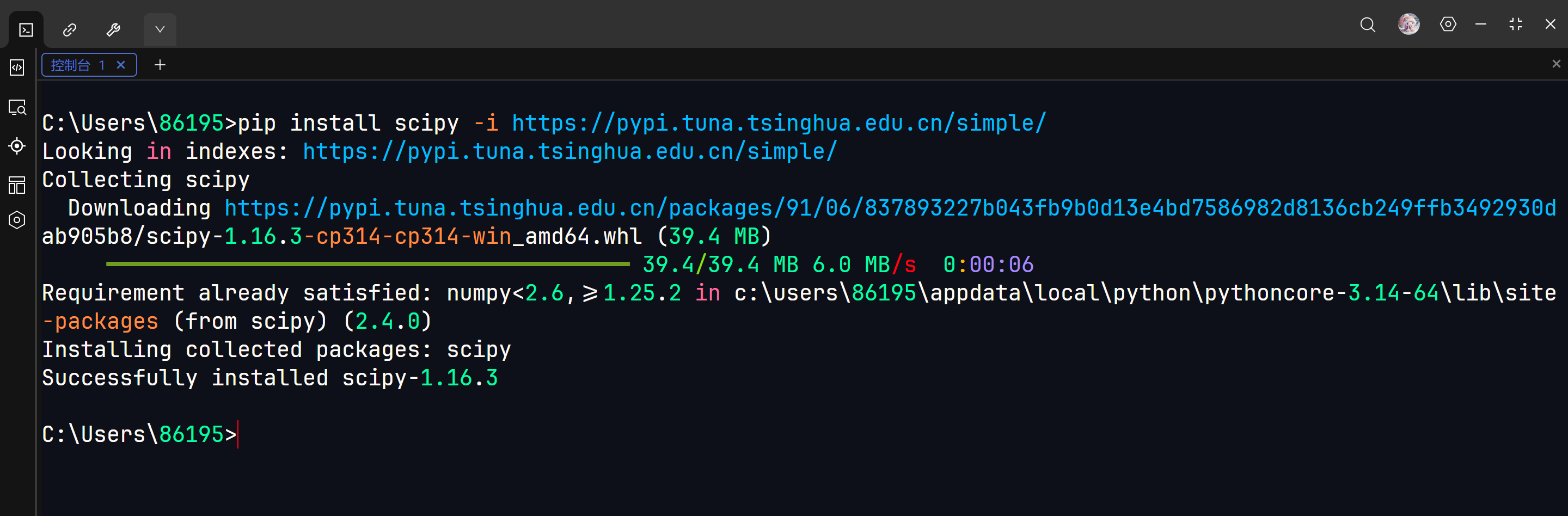 pip install scipy -i https://pypi.tuna.tsinghua.edu.cn/simple/