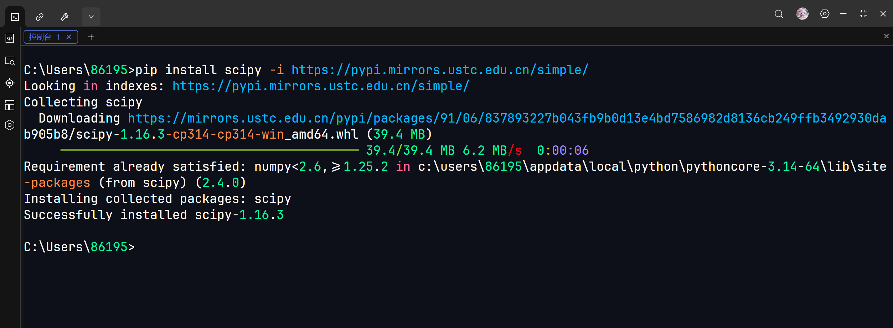 pip install scipy -i https://pypi.mirrors.ustc.edu.cn/simple/